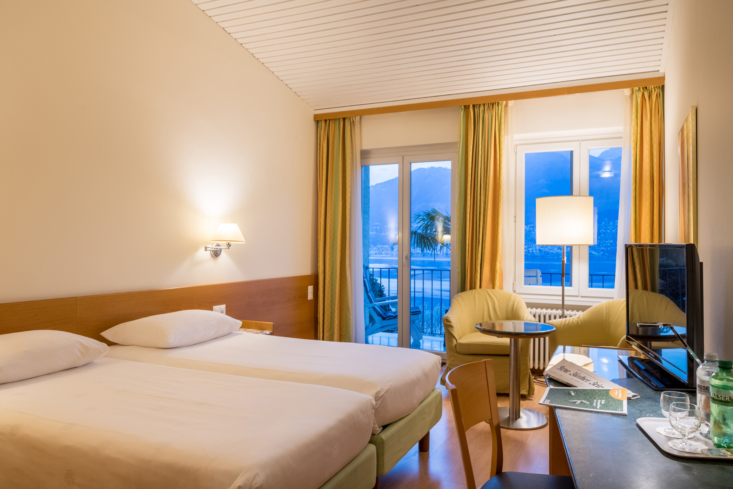 Die Bellavista Classic Double Rooms sind sowohl in einem der Bungalows oder in der Dependance. Alle Zimmer sind komfortabel eingerichtet mit 2 Einzelbetten nebeneinanderstehend, mit teils fantastischem Blick auf den Lago Maggiore und verfügen allesamt über eine Dusche oder Badewanne, WC, Haartrockner, Telefon, Wi-Fi Internet, HD-TV mit integriertem Radio, Kühlschrank, Safe, Balkon oder eine Terrasse.